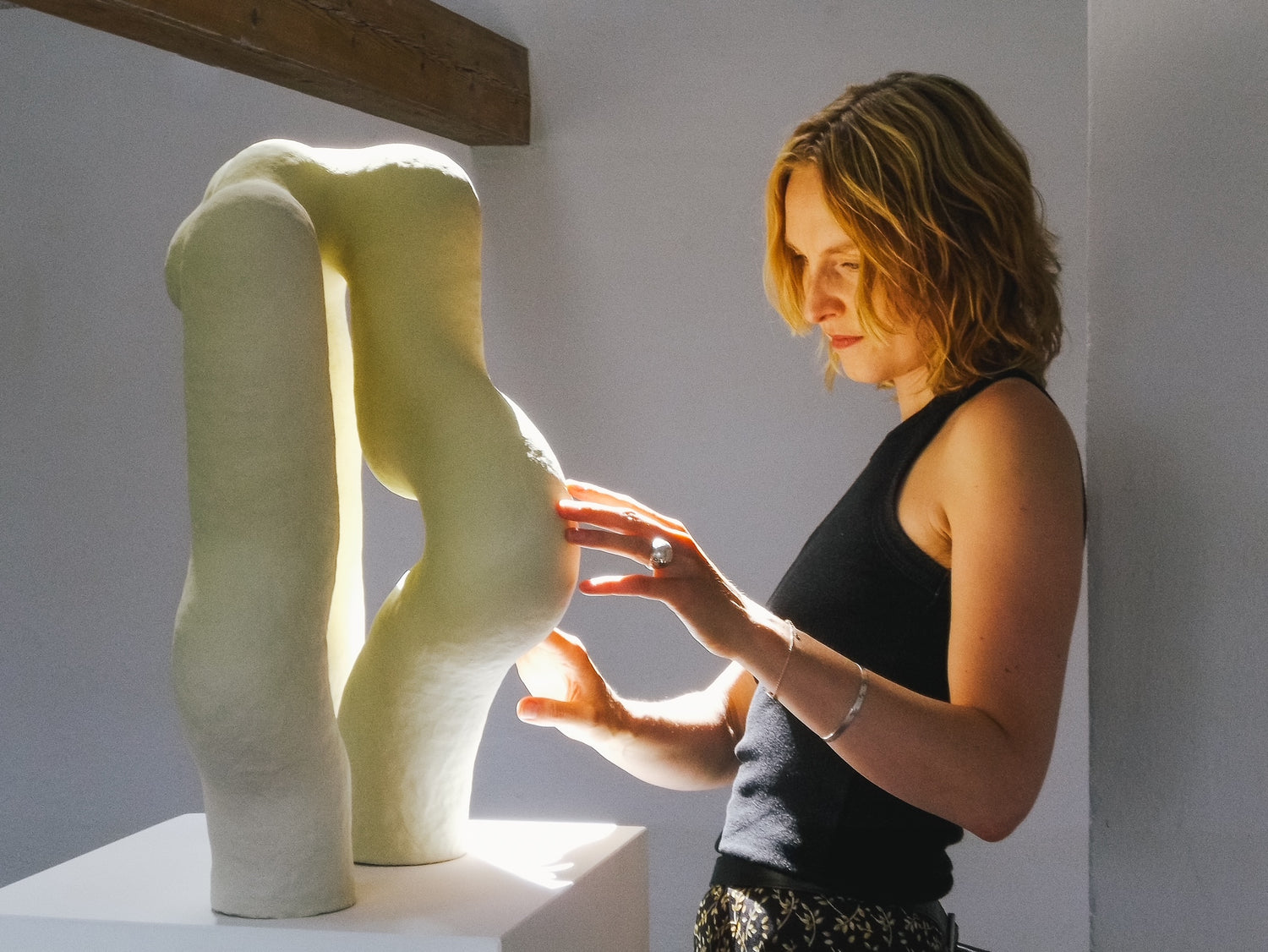 Du må gerne visualisere et sted i dit hjem, hvor det færdige værk kan stå. Jeg hjælper dig i gang og igennem både formgivning og teknikker, mens du lader din intuition guide processen."